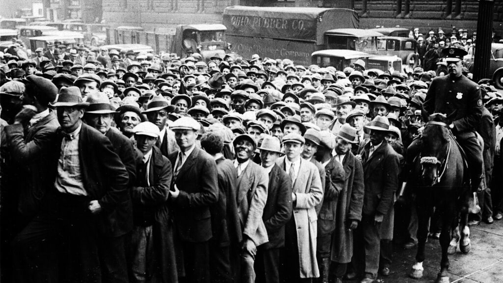 The Great Depression began with “Black Tuesday” on Oct. 29, 1929, when a panic selloff triggered a stock market collapse, wiping out thousands of investors who had borrowed heavily. As consumer demand declined, manufacturing firms laid off workers and idled factories.