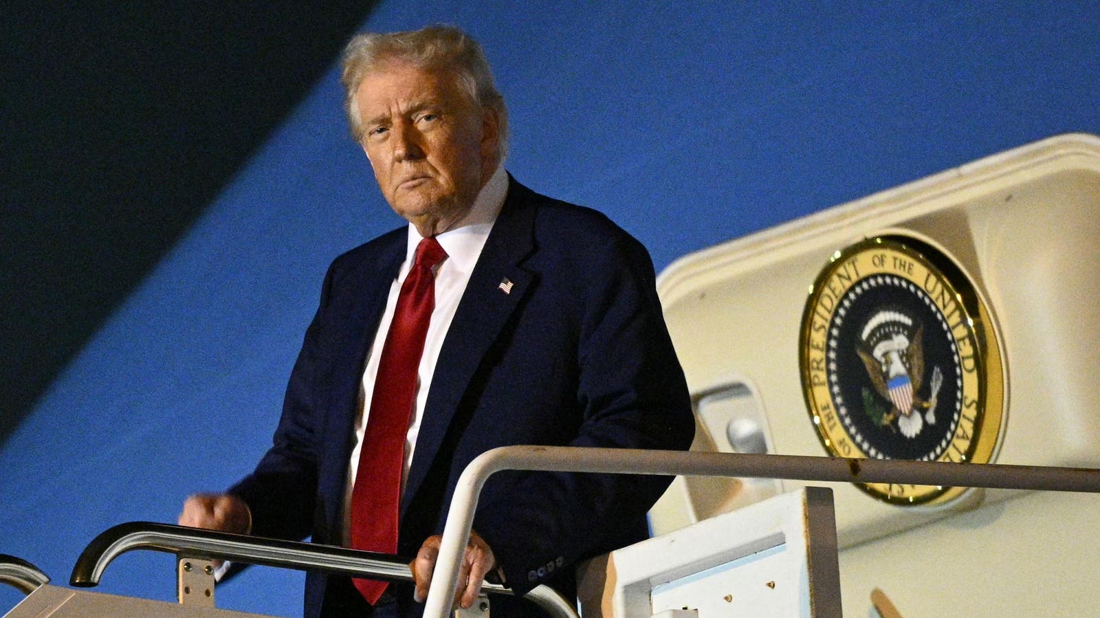 US President Donald Trump steps off Air Force One upon arrival at Palm Beach International Airport … More
