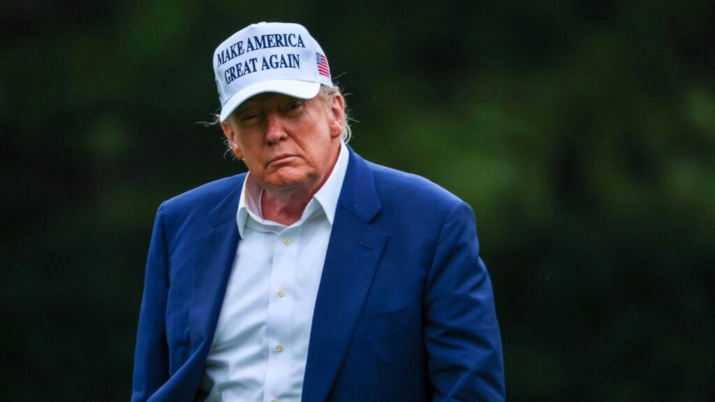 U.S. President Donald walks on the the south lawn of the White House in Washington, DC.