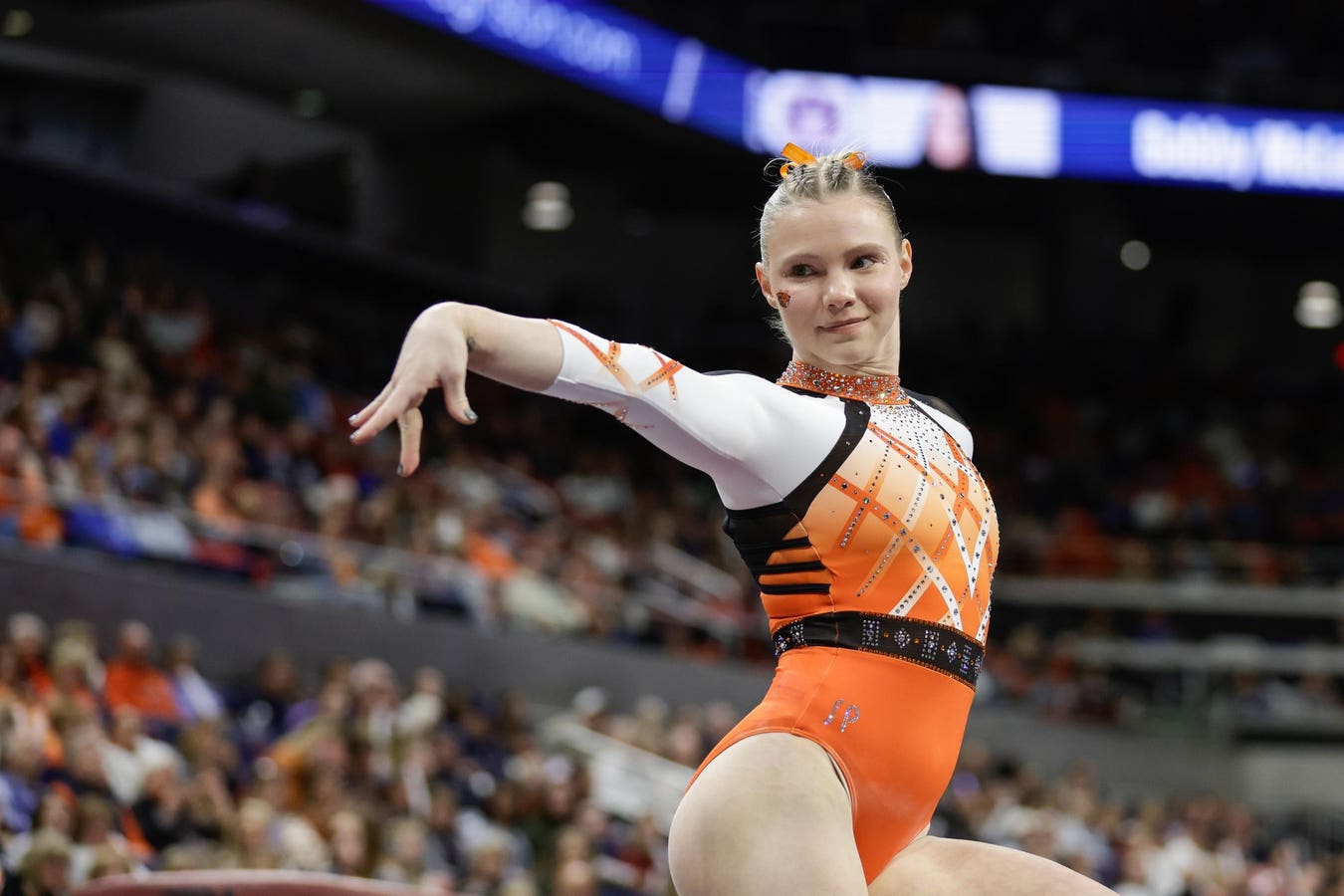 AUBURN, ALABAMA – JANUARY 24: Jade Carey of the Oregon State Beavers competes on the floor during a … More