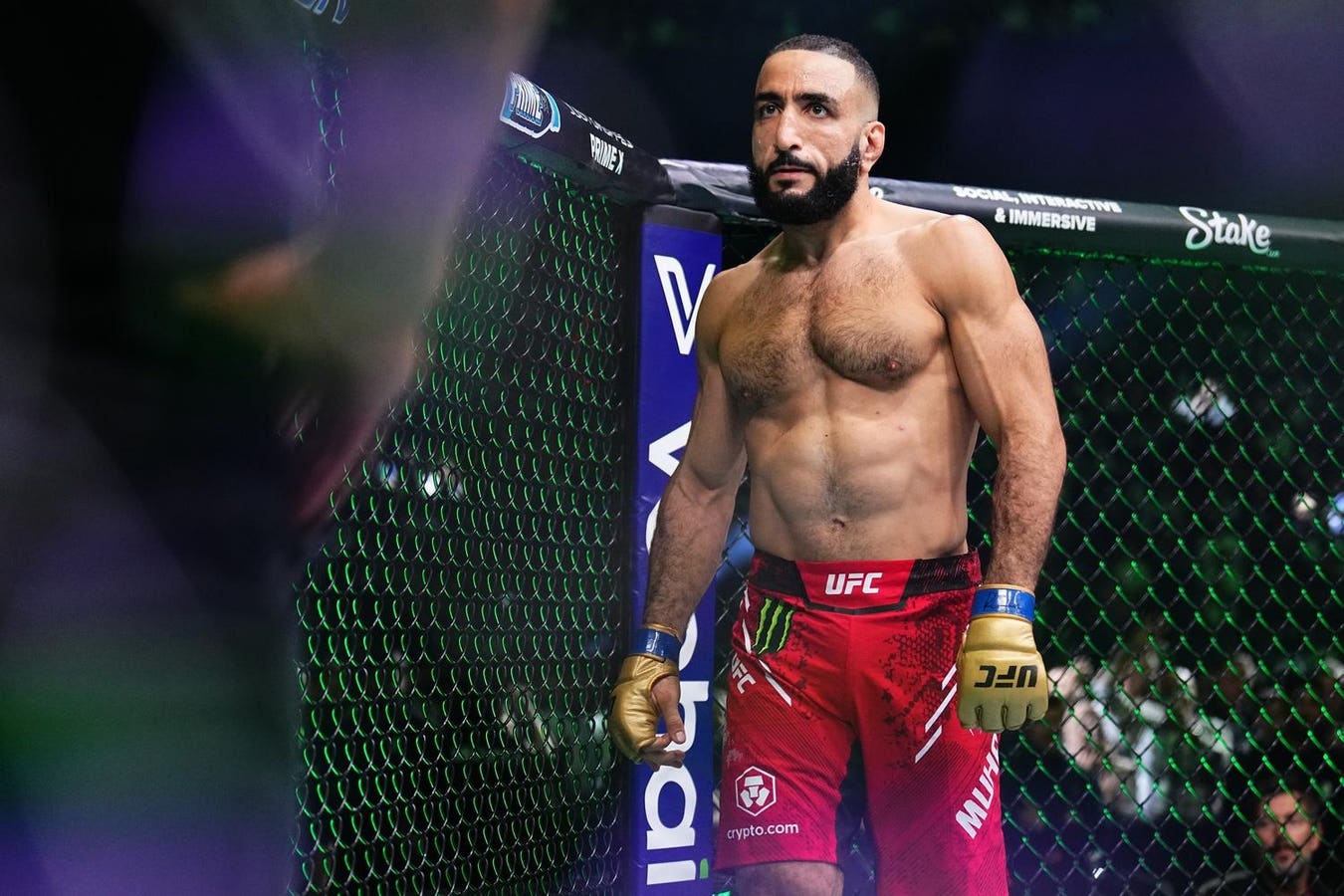 MANCHESTER, ENGLAND – JULY 28: Belal Muhammad looks on in the UFC welterweight championship bout … More during the UFC 304 event at Co-op Live on July 28, 2024 in Manchester, England. (Photo by Ben Roberts Photo/Getty Images)