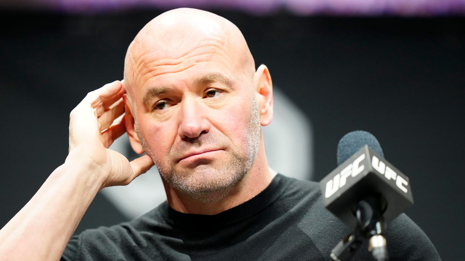 NEWARK, NJ – MAY 04: Dana White speaks to the press and the fans at the UFC 288 media day on May 4, … [+]
