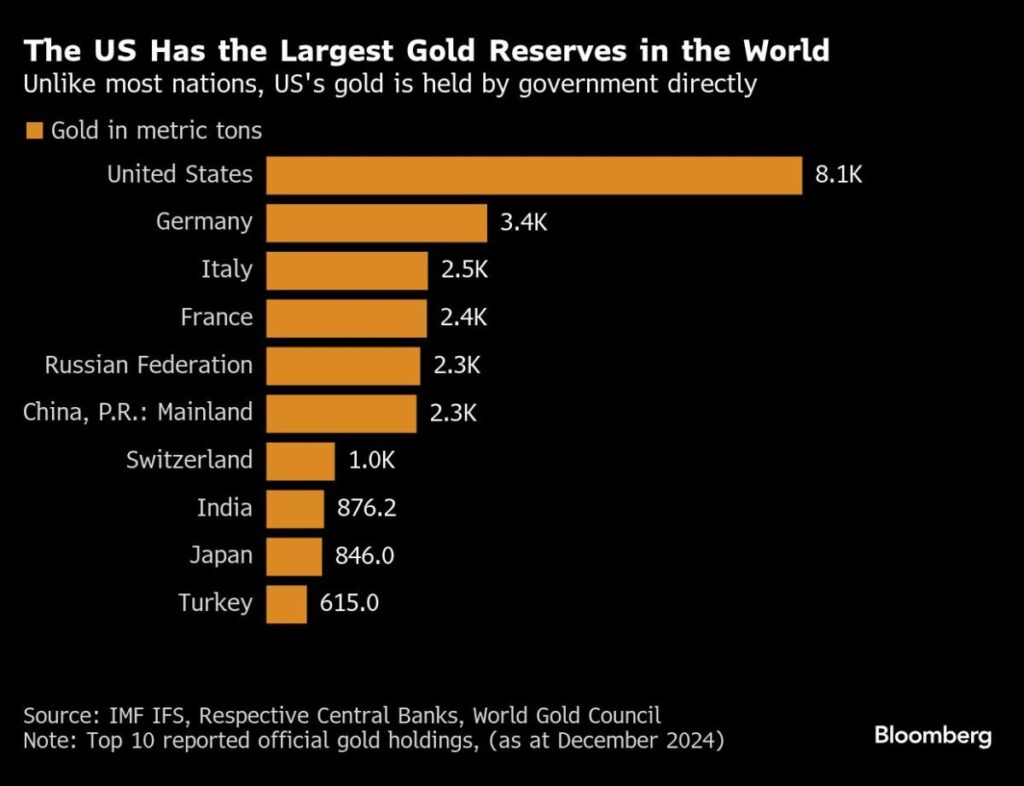 While it’s probably statutorily permissible, selling national bullion reserves to buy foreign exchange instruments could be politically costly, Miran wrote. Offloading even a portion of the 8,133 metric tons of gold held by the US government would likely hurt gold prices.