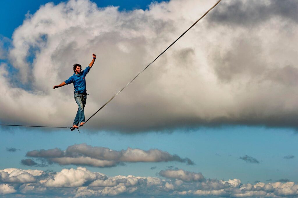 Daniel Laruelle of South Africa walks on the line during the Highline Extreme event in Moleson peak, … More