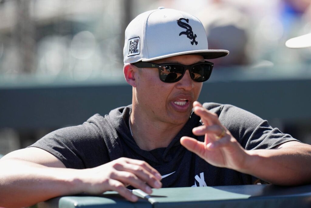 Chicago White Sox manager Will Venable talks with another coach during the second inning of a spring … [+] training baseball game against the Colorado Rockies Tuesday, Feb. 25, 2025, in Scottsdale, Ariz. (AP Photo/Ross D. Franklin)